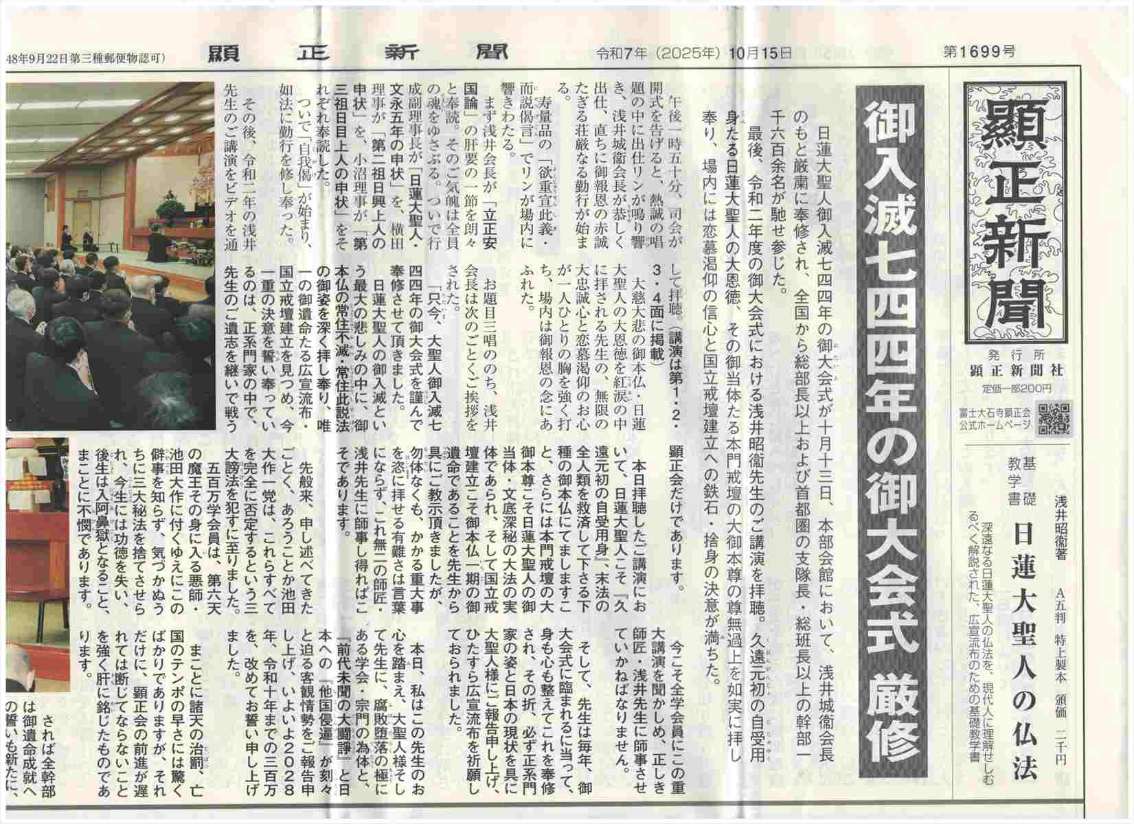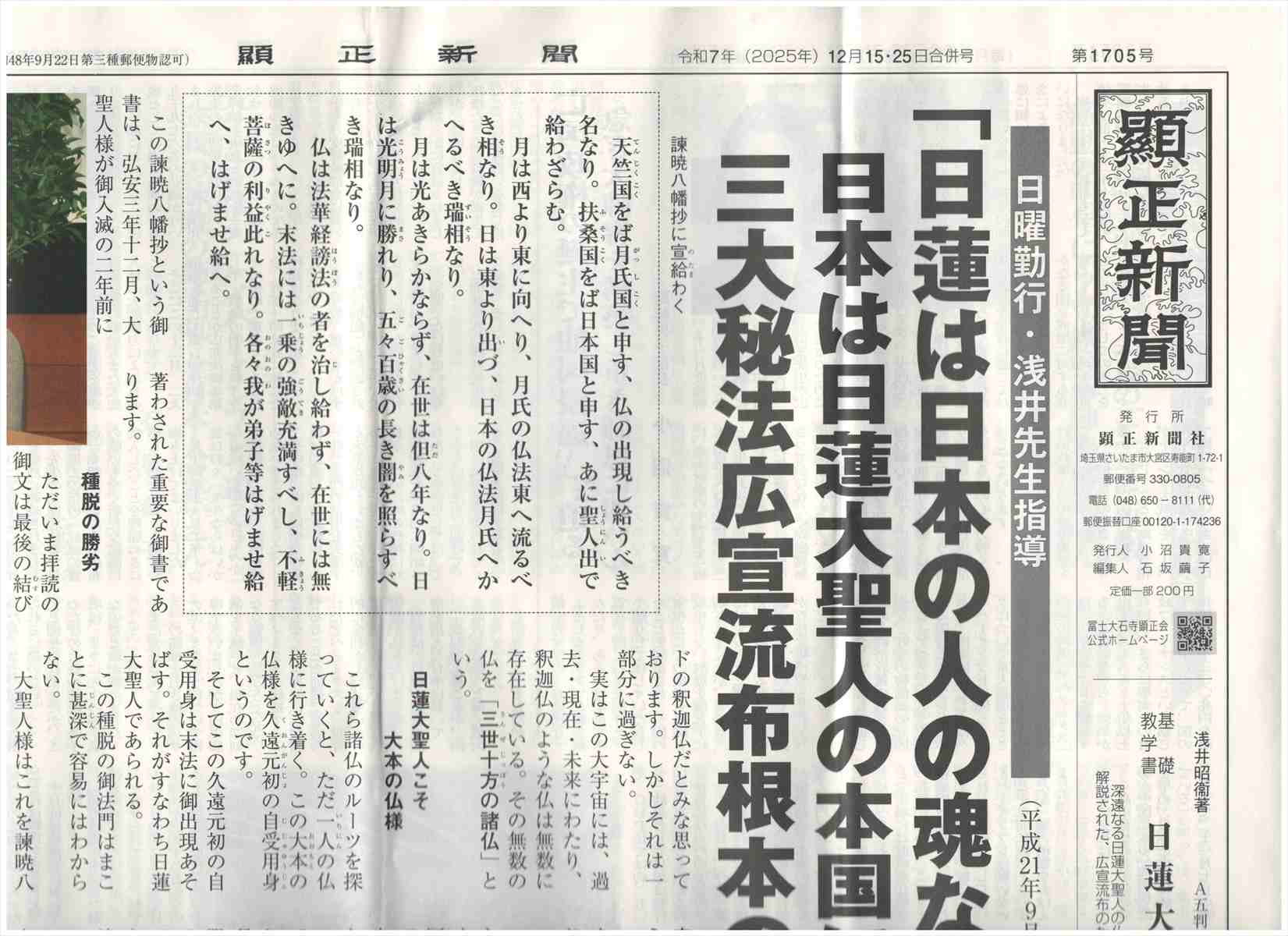 宗教法人「顕正会」の浅井昭衛会長は、拙著 『