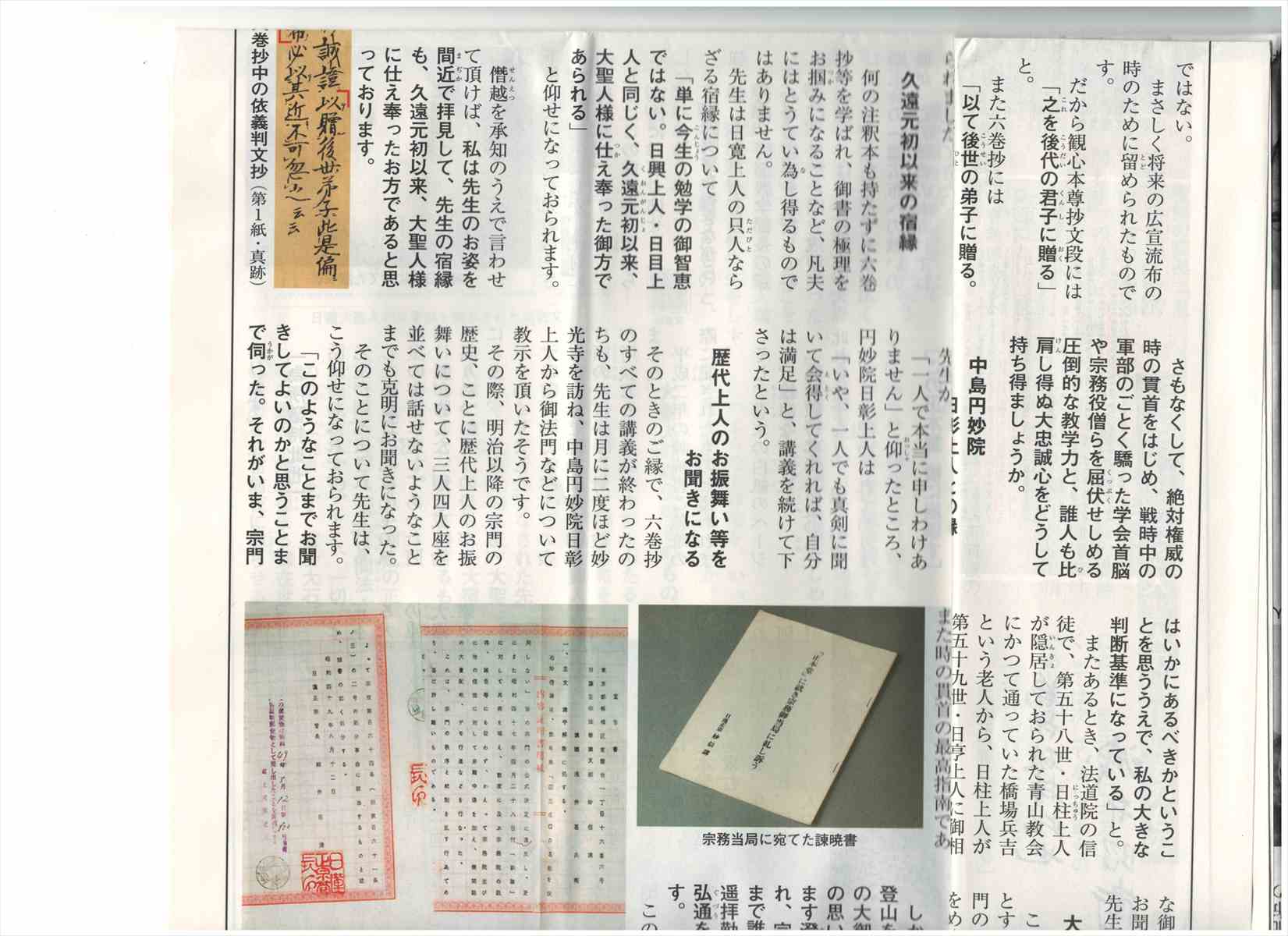 「早瀬日如管長への諫訴」特集号2